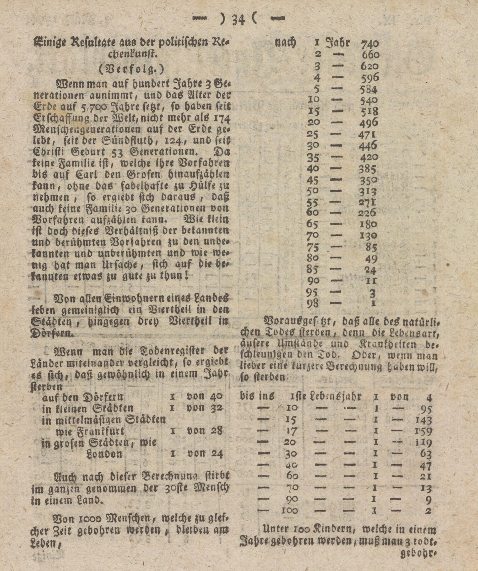Vorausges tzk, baß alle besnatürli. chen Todes sterben, denn die Lebcnearr, äufere Umstände und Krankheiten de« schleunigen den Tod. Oder, wenn man lieber ein« kürzere Berechnung haben will, so sterben
