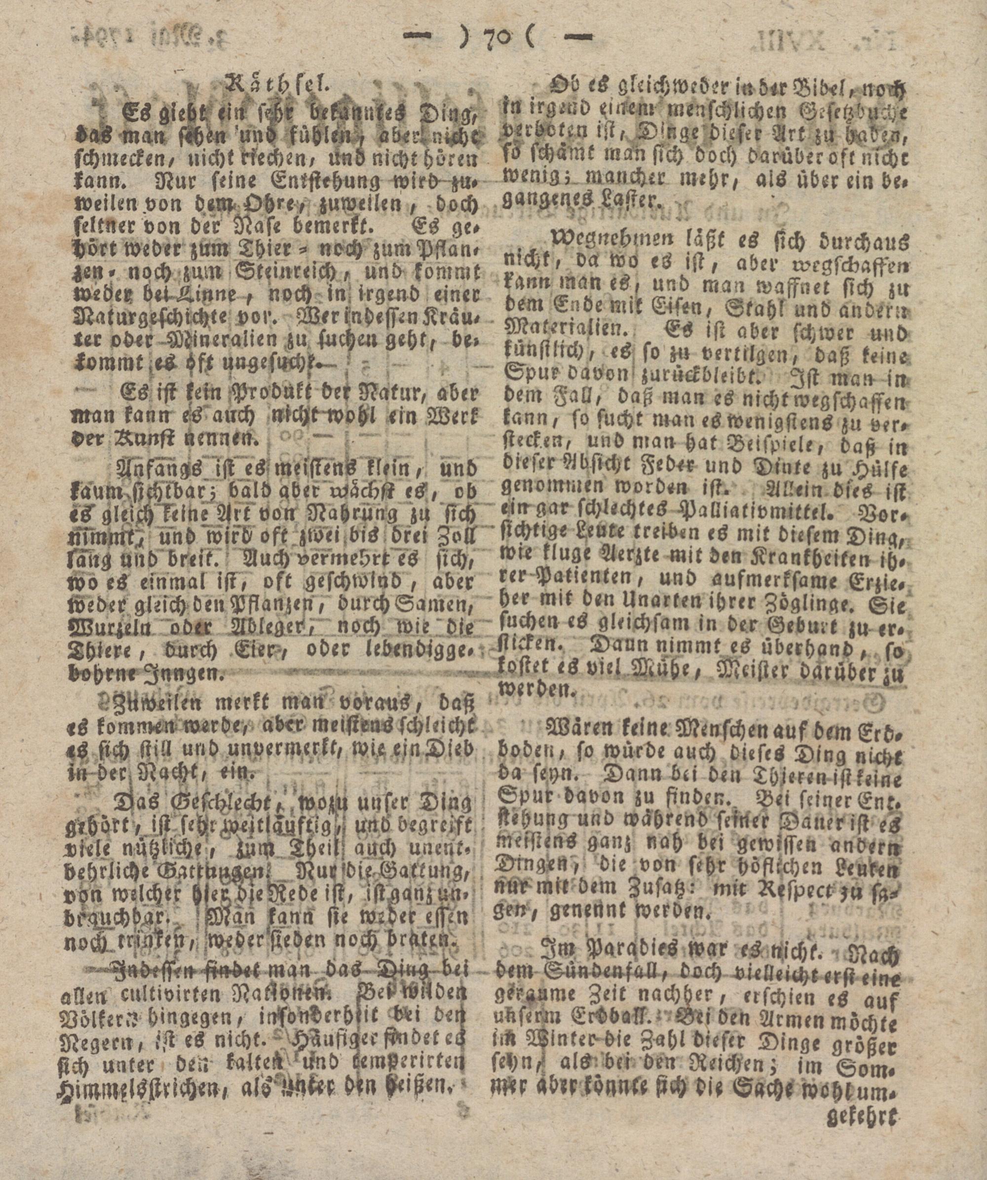 Es gieht ein Hr bekanutes Ding, irgend §inem menschlichen Gefttzbuche -Ls man sKh^n 'und fühl mH aberl nhche .veroottn ist, Dinge dieser Art zu frafren, schmecken, nicht Vieche», und nicht hören 'ö v^aTnf man stch doch darüberofk mchc kann. Nur seine Entstehung mir fr-tu* lvemg; mancher mehr, als über ein be, weilen von dem-Ohre, zuweilen , doch Zangeres Laster.