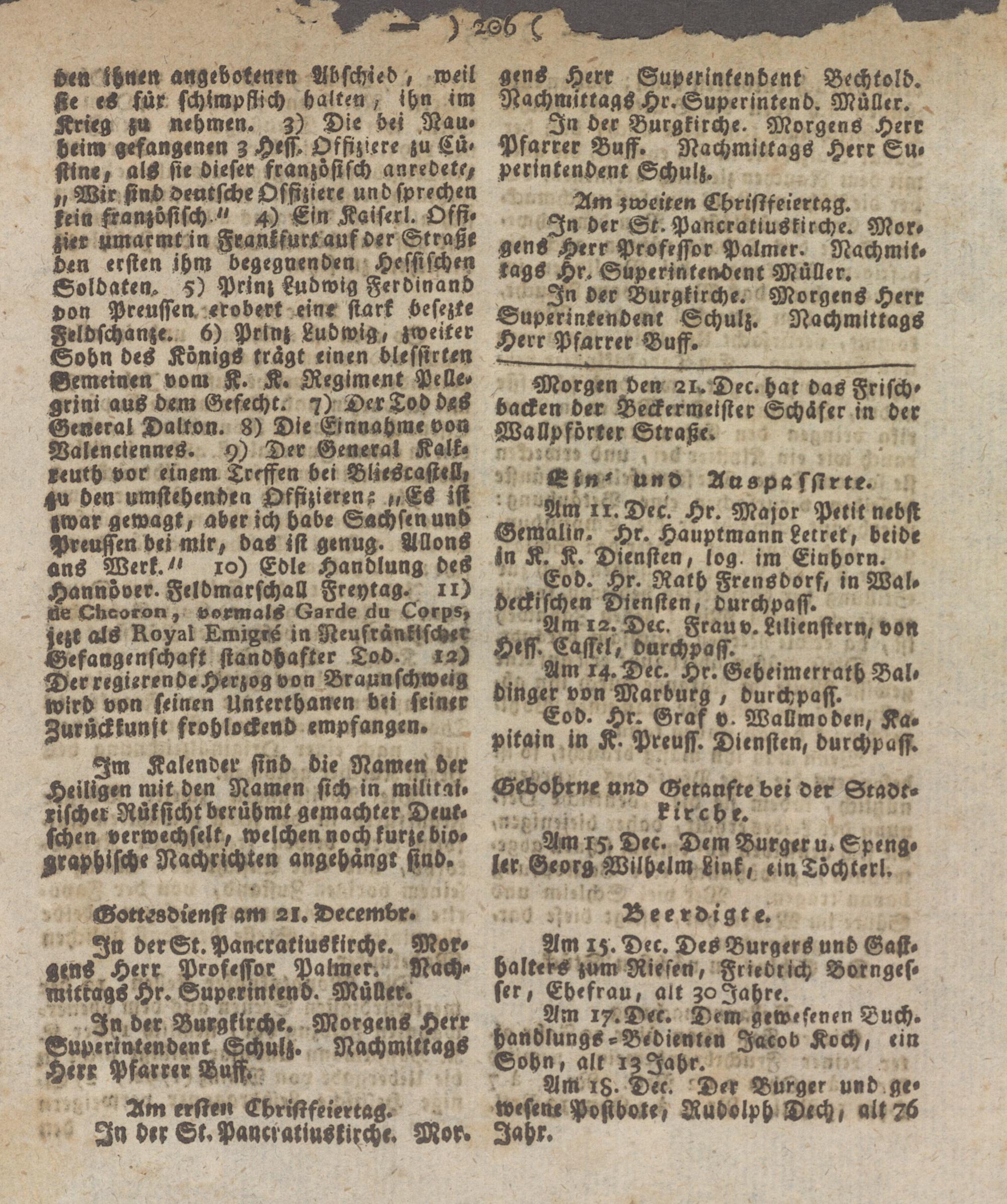 In der St. Pancratiuskirche. Morgen- Herr Professor Palmer. Nachmittags Hr. Superintendent Müller.