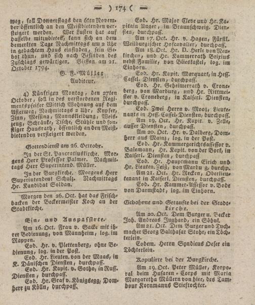 Änn, Messing, Mannskleidung, Weis. nankS m Hess. Cassel. Drensten, durchpass, zeug, Schranke, Tische, Stühle und son. _ ^:I9Äöct,h Kapit. V. Zelle, stiger Hausrath , öffentlich an den Meist- äusser Diensten, durchpass.