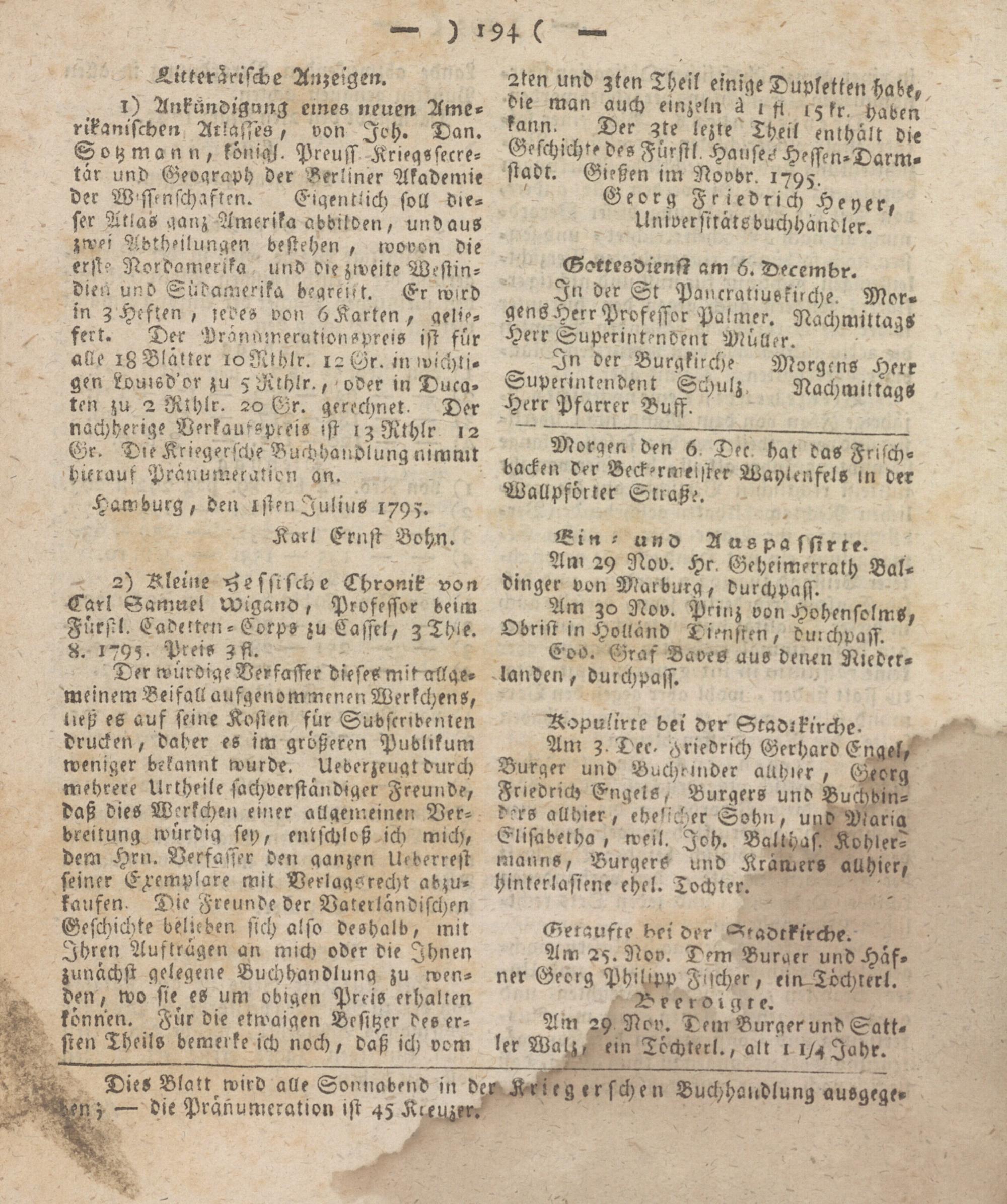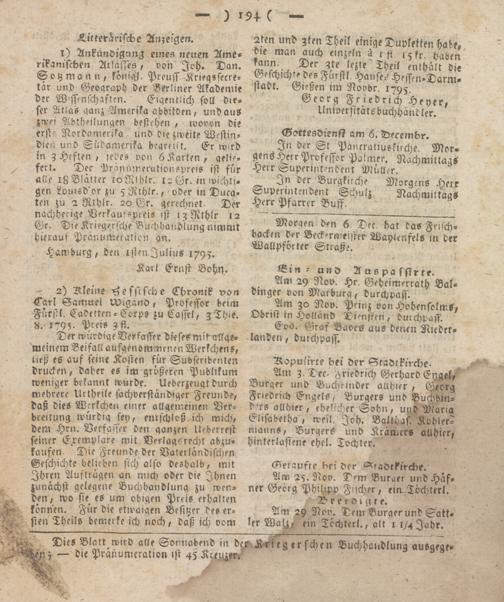 2ken und zten Theil einige Dupletien habe, die man auch einzeln ä 1 ft 15 fr. haben raun- Der gte lezte Theil enthält die Geschichte des Furstl. Haufen Hessen-Darm- stadt. Gießen im Novbr. 1795.