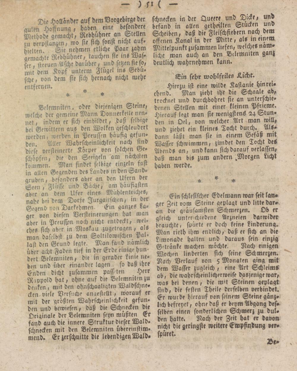 Ein schlesischer Edelmann war feit Ian» ger Zeit vom Steine geplagt und litte daran "die qräusamsten Schmerzen. Ob er gleich unter chiedene Arzneien darwi'der brauchte, spürte er doch keine Linderung. Man rieth ihm endlich, daß er sich an die Limonade halten und daraus fein einzig Gstränke machen möchte. Nach einigen Wochen linderten sich feine Schmerzen. Nach Verlauf von 5 Monaten ging mit dem Wasser zugleich, eine Art Schleims ab, die wahrscheinlicherweise dasjenige war, was bei denen, die m't Steinen geplagt sind, die festen Theile derselben verbindet. Er wurde hierauf von seinem Steine gänzlich befreyet, ohne daß er deym Abgang desselben einen sonderlichen Schmerz zu dul. den hatte. Nach der Zeit hat er davon nicht die geringste weitere Empfindung verspüret.