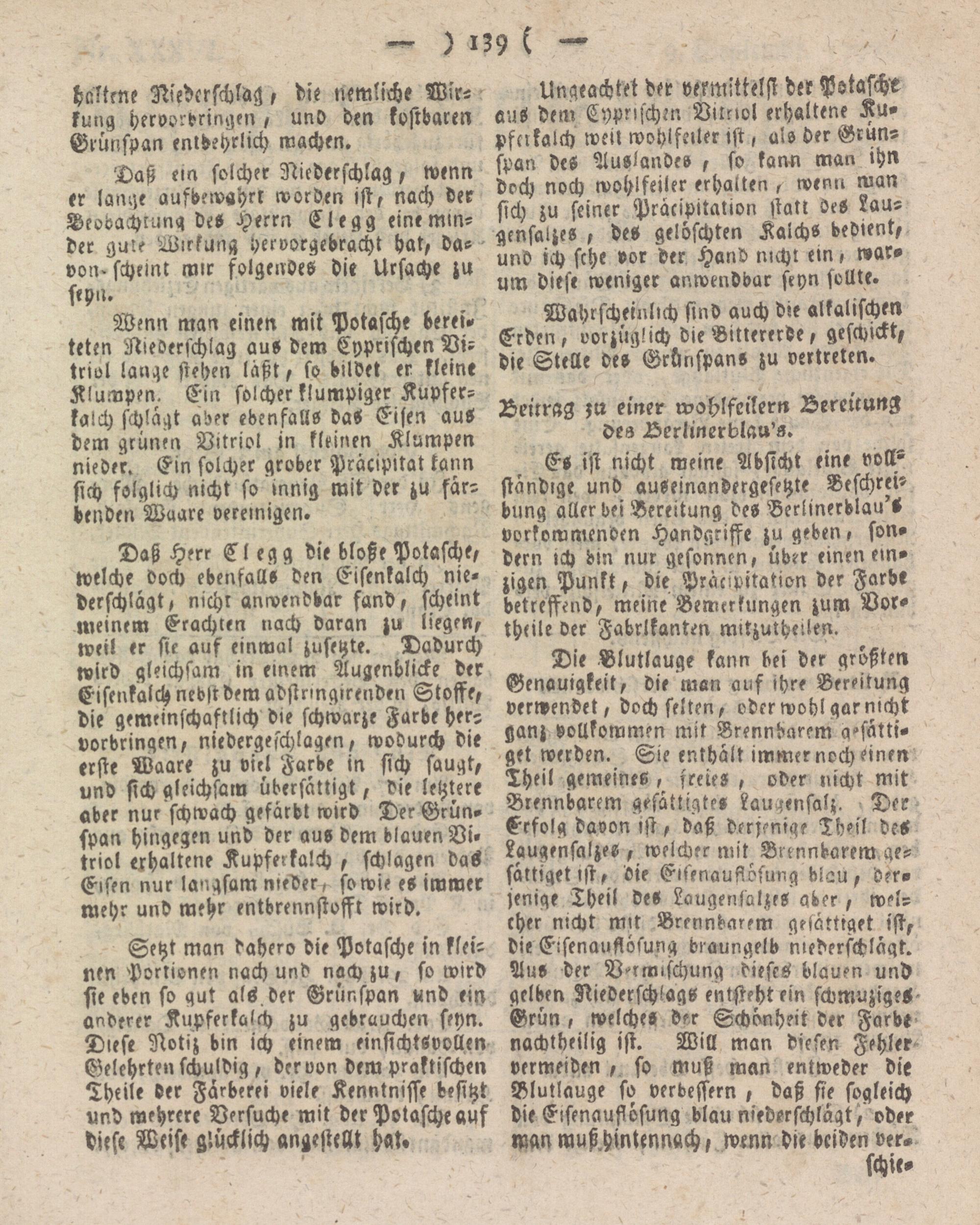 Beitrag ;u einer wohlfeilern Bereitung des Berlinerblau's.