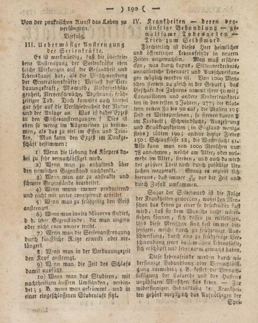 IV. Krankheiten — deren vernünftige Behandlung — g e- waltsame Todesarten — Trieb zum Selbstmord