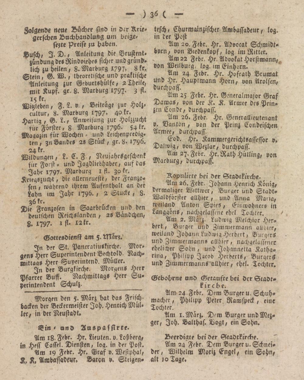 Am 27. Febr. Hr. Rath Hütling, von Marburg, durchpass.