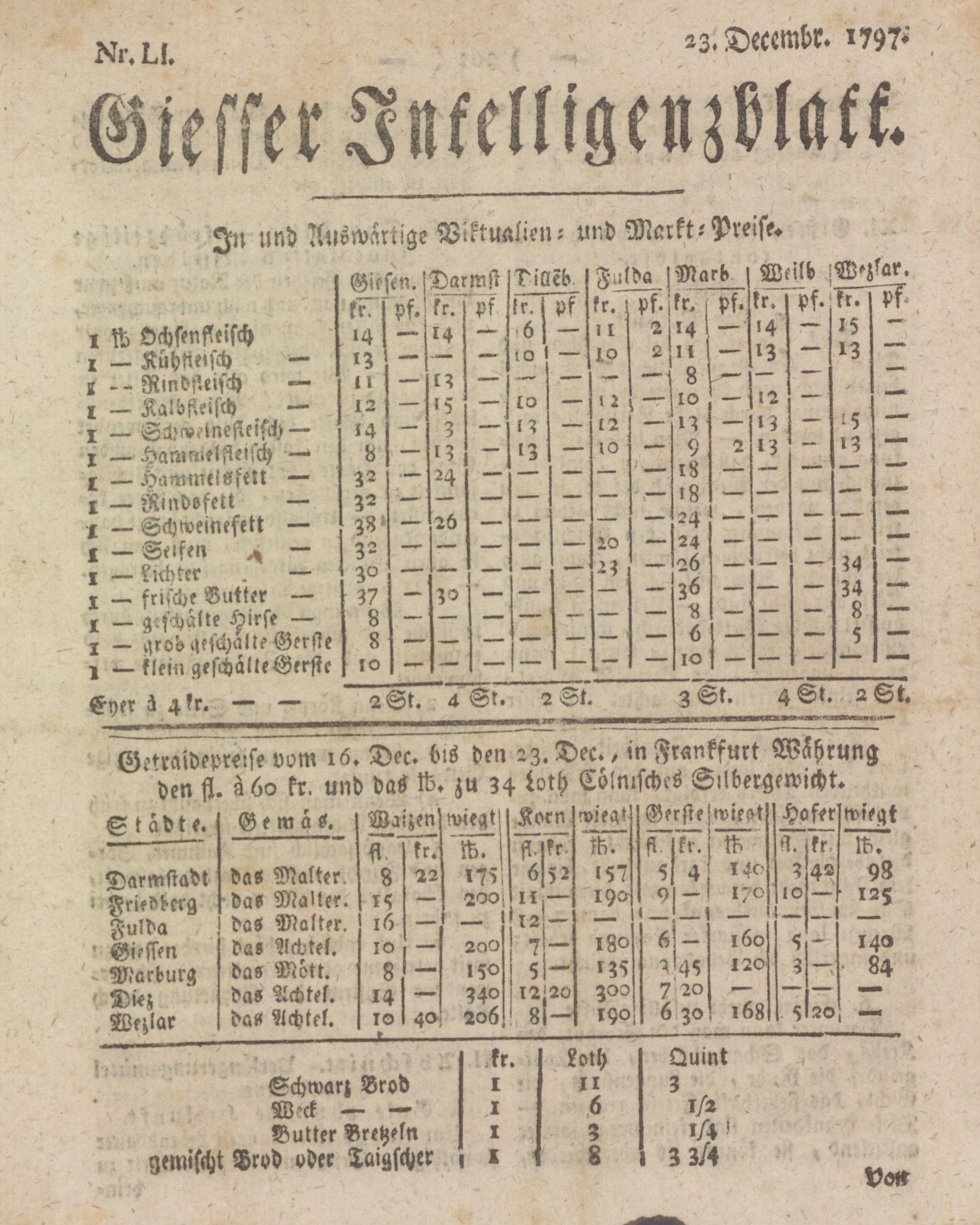 gn und Auswärtige Viktualien- und Markt-Preise.