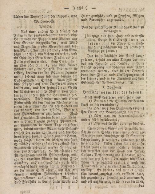 (Auszüge aus Hm. Hufeland vortrcfli- chem Buche die Kunst lang zu « leben, ist in der Kriegerfchrn Buchhandlung nächstens die 2te vermehrte Auflage zu haben.)