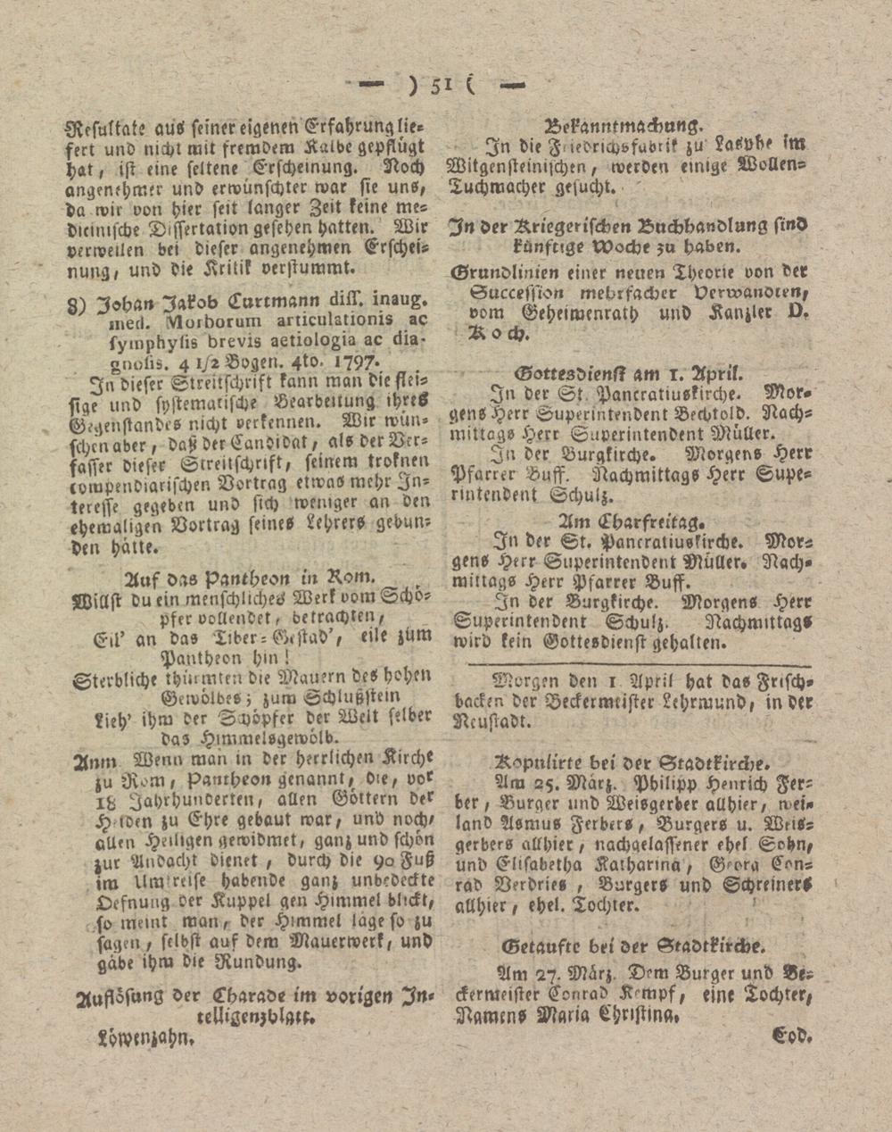 In dieser Streitschrift kann man die fleisige und systemarische Bearbeitung ihre- Gegenstandes nicht verkennen. Wrr wünschen aber, daß der Candivat, als der Verfasser dieser Screilschrtft, seinem troknen lvmpendiarischen Dortrag etwas mehr Interesse gegeben und sich weniger an den ehemaligen Vortrag seines Lehrers gebunden hätte.