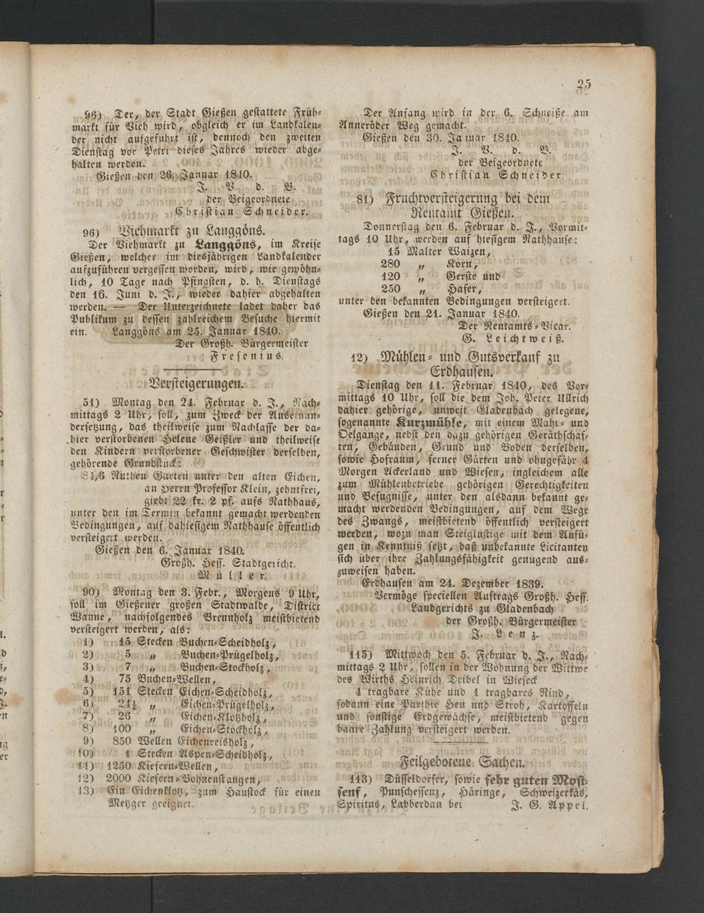 Vermöge speciellen Auftrags Großh. Hess. Landgerichts zu Gladenbach der Großh. Bürgermeister