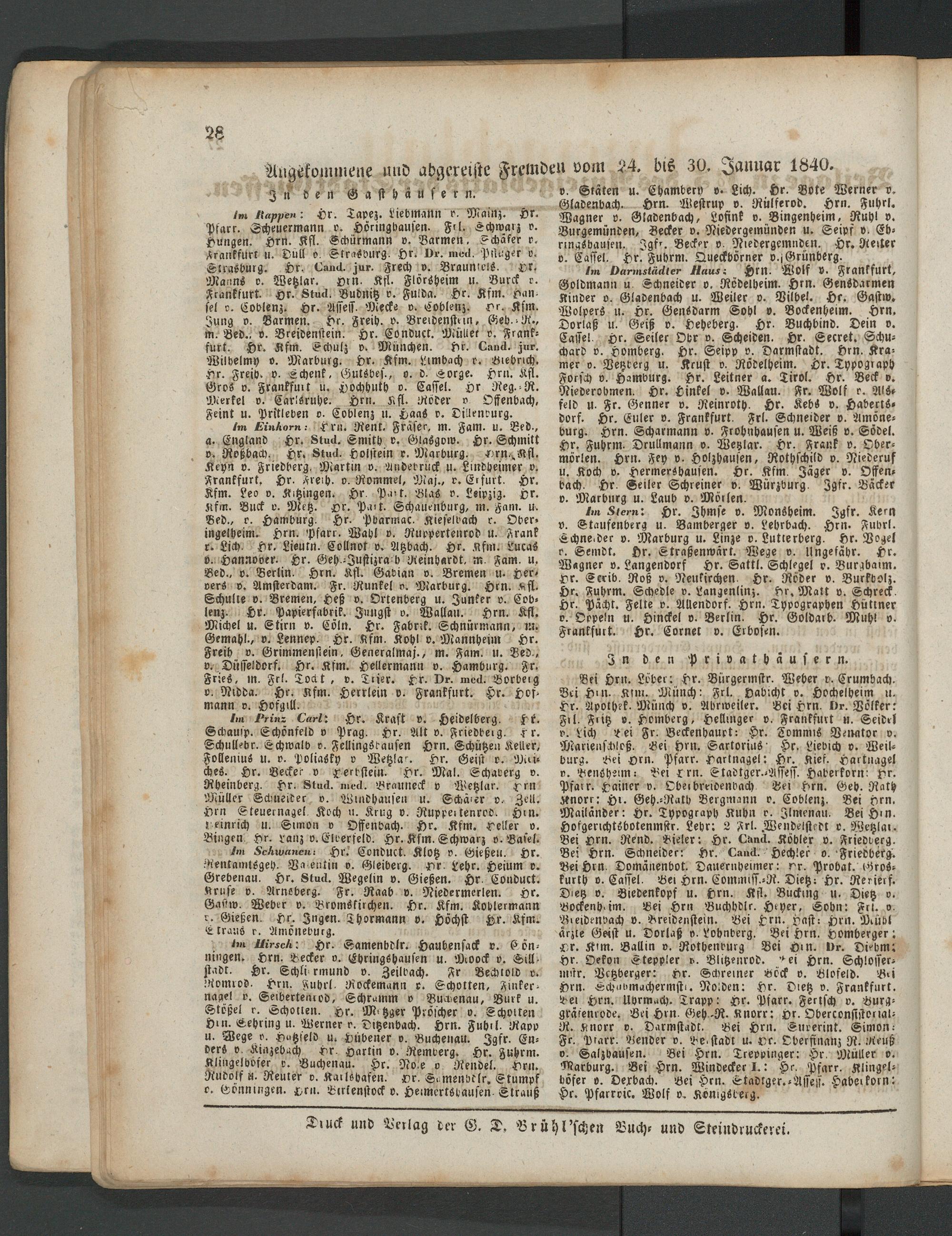 1m Stem: Hr. Jhmse v. Monsheim. Jgfr. Kern v. Staufenberg u. Bamberger o. Lehrbach. Hrn. Fubrl. Schneider v. Marburg u. Linze v. Lutierberg. Hr. Vogel r. Semdt. Hr. Straßenwärt. Wege v. Ungefähr. Hr. Wagner v. Langendorf Hr. Sattl. Schlegel v. Burgbaim. er. Scrib. Roß v. Neukirchen Hr. Röder v. Burkbolz. Hr. Fuhrm. Schedle v. Langenlinz. Hr, Matt v. Schreck Hr. Pacht. Felle v. Avendorf. Hrn. Typographen Hüttner v. Oopeln u. Hinckel v. Berlin. Hr. Goldarb- Muh! v. Frankfurt. Hr. Cornel v. Erbosen.