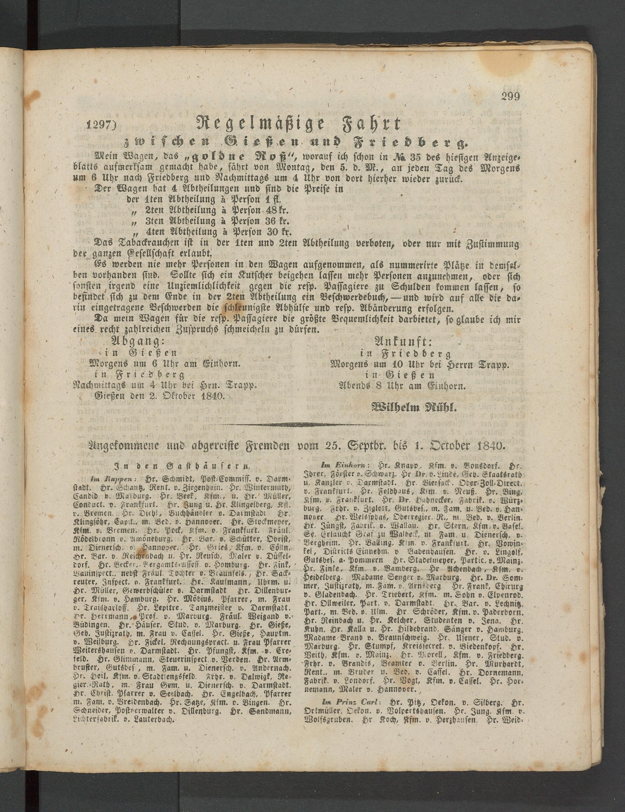 An k u n ft: in Friedberg Morgens um 10 Ubr bei Herrn Trapp, in Gießen