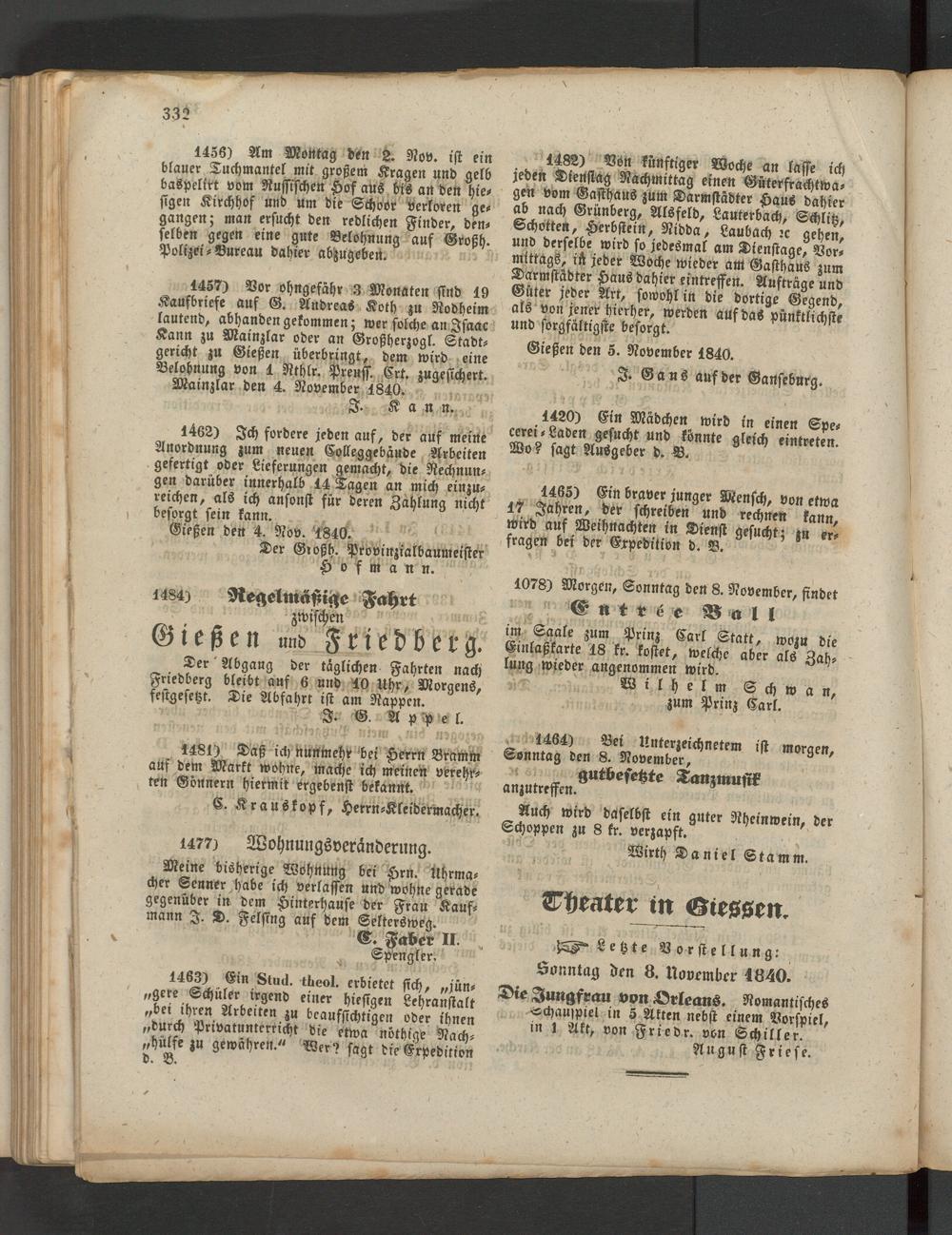 1457) Vor ohngefähr 3 Monaten sind 19 Kaufbriefe auf G. Andreas Koth zu Rodheim lautend, abhanden gekommen; wer solche an Isaac Kann zu Mainzlar oder an Großherzoal. Stadtgericht zu Gießen überbringt, dem wird eine Belohnung von 1 Nthlr. Preuss Crt. zugesichert.