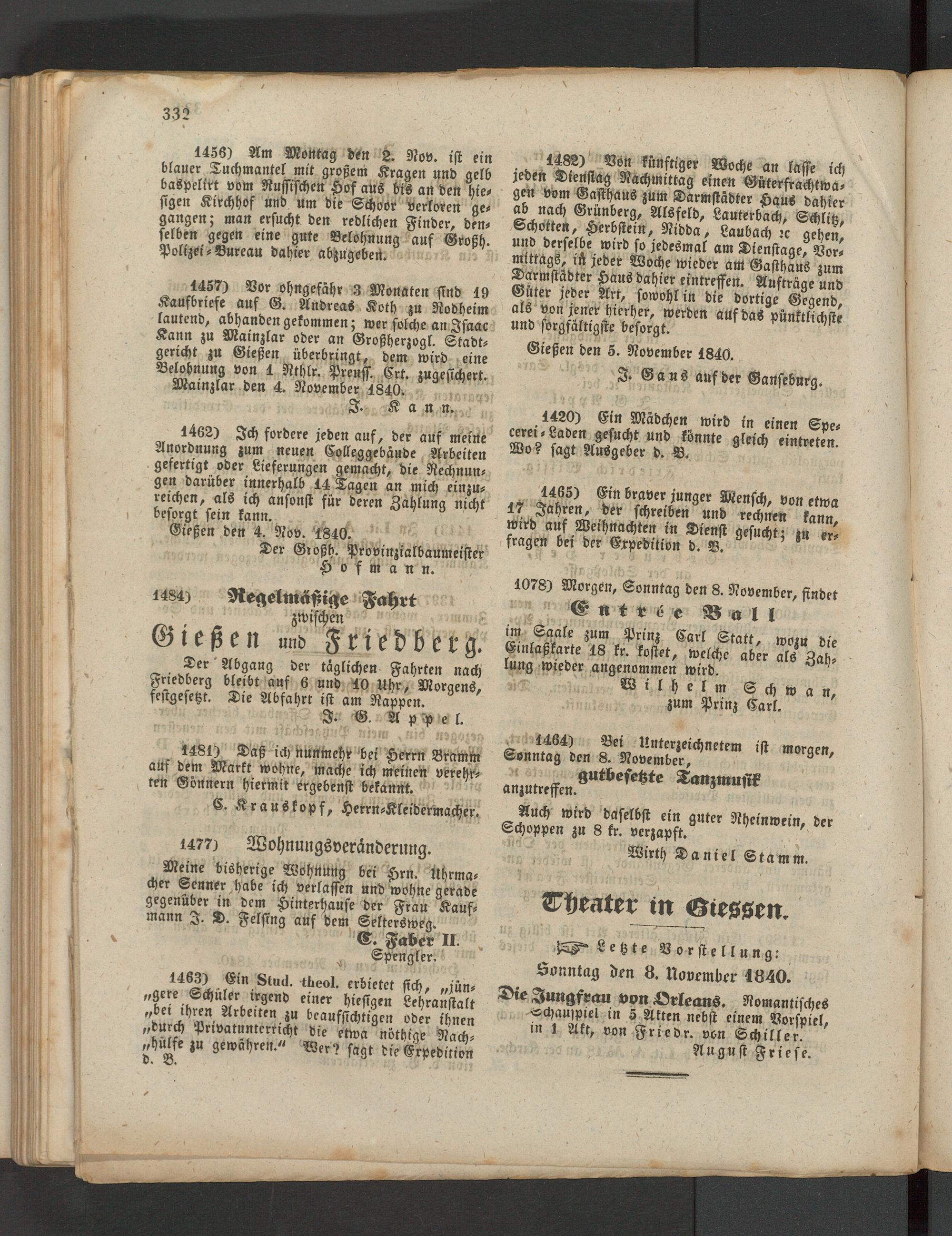 Letzte Vorstellung: Sonntag den 8. November 1840.