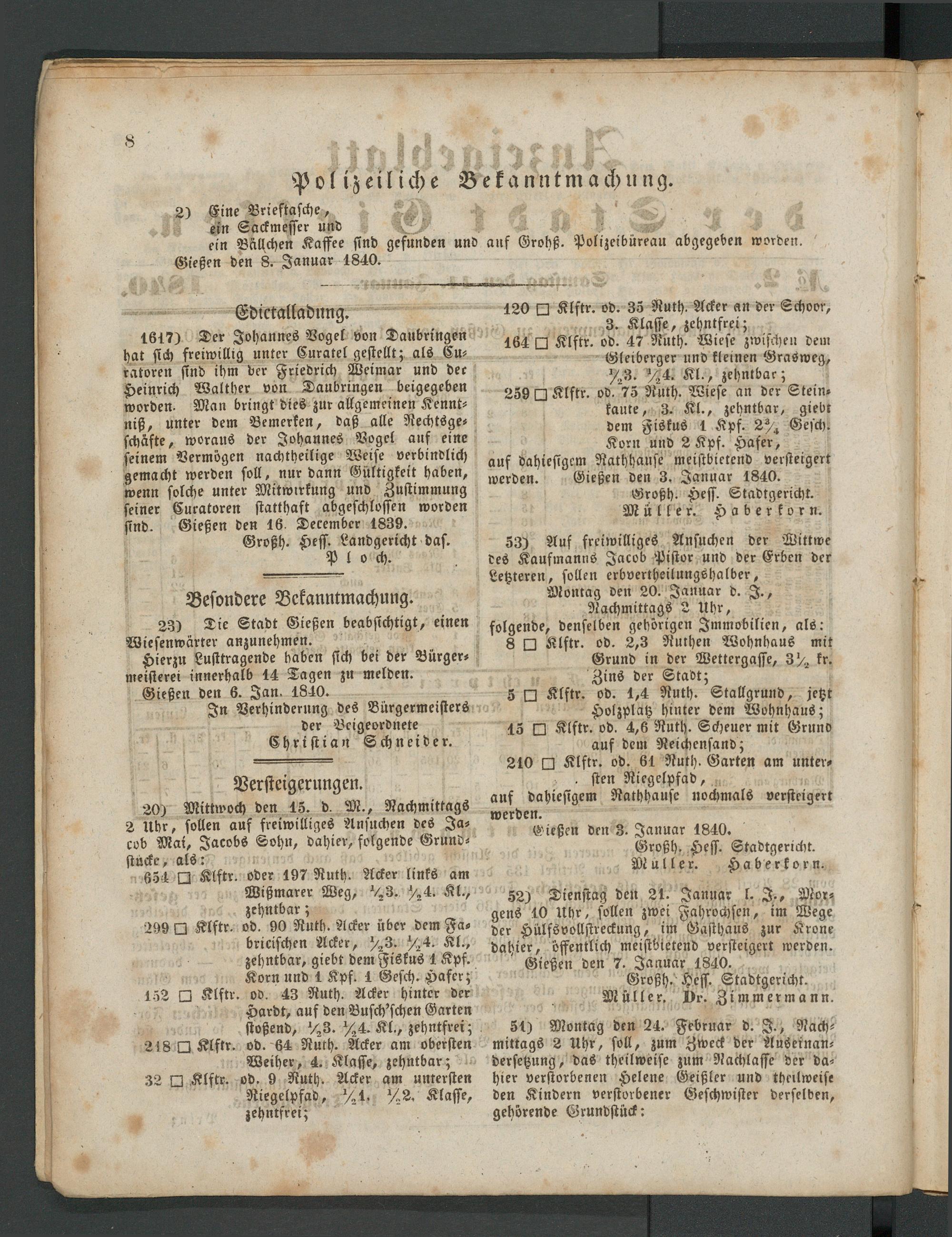 auf dahicsigcm Rathhallse meistbietend versteigert werden. Gießen den 3. Januar 1840.