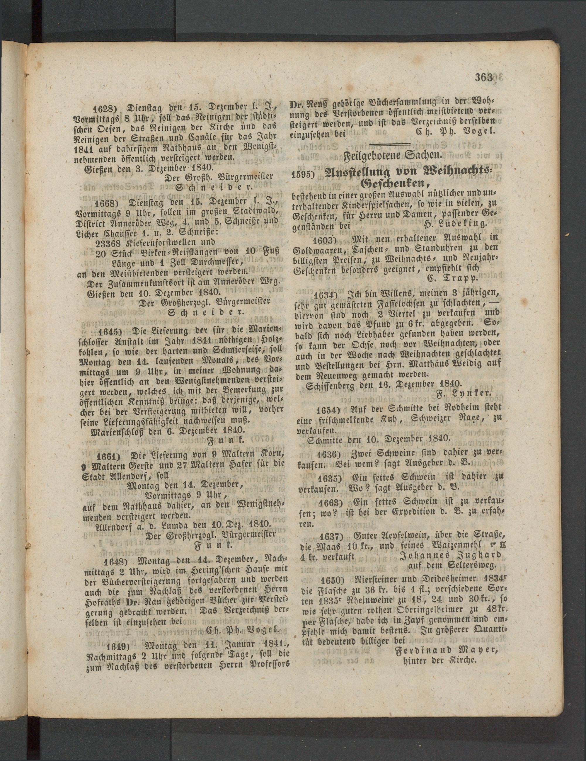 Gießen den 3. Dezember 1840.