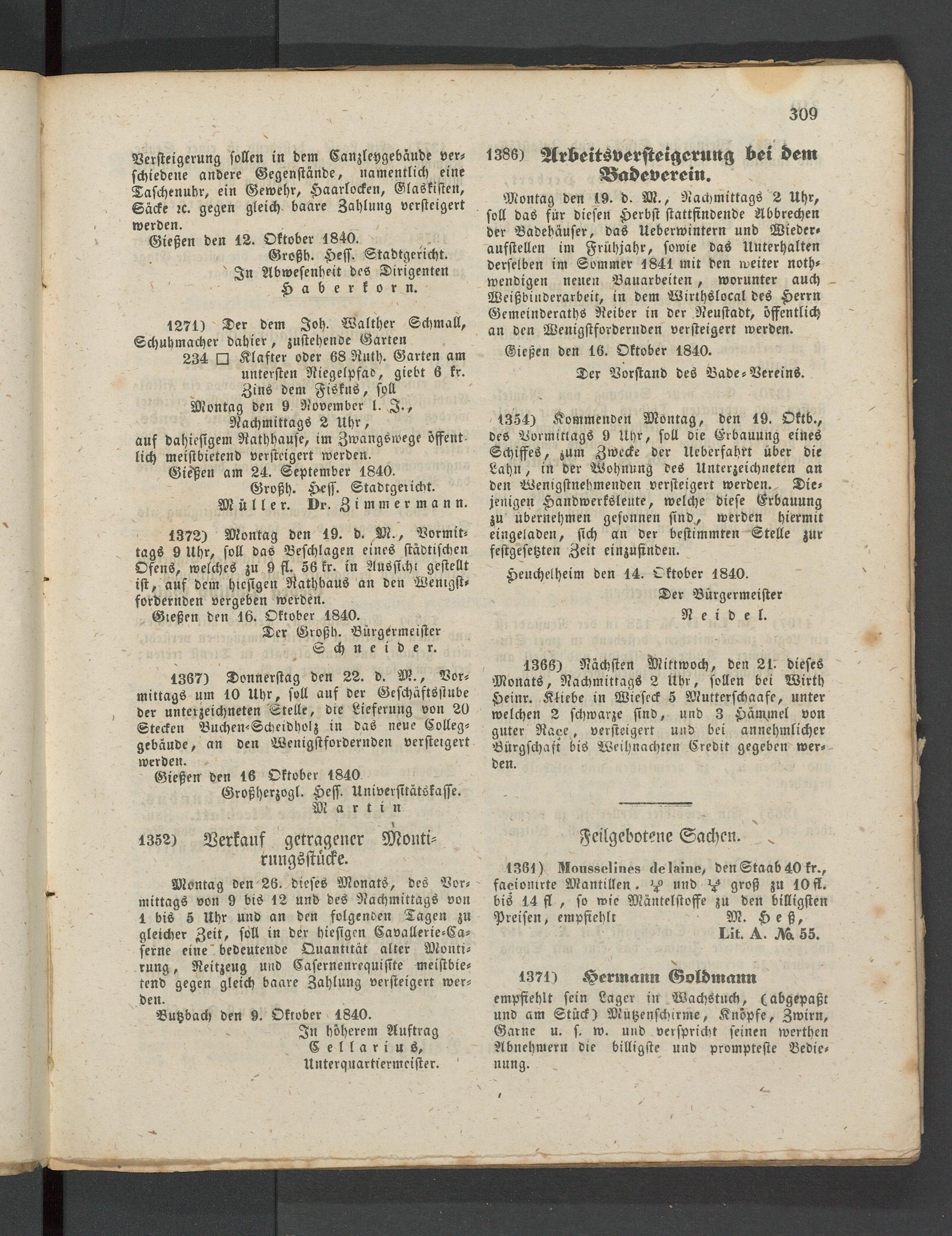 Butzbach den 9. Oktober 1840.