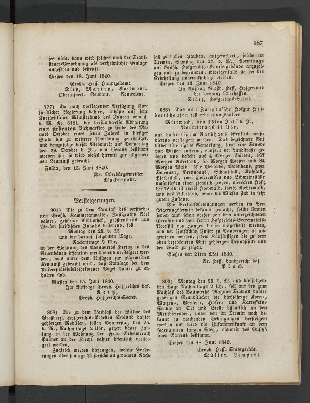 Gießen den 18. Juni 1840.