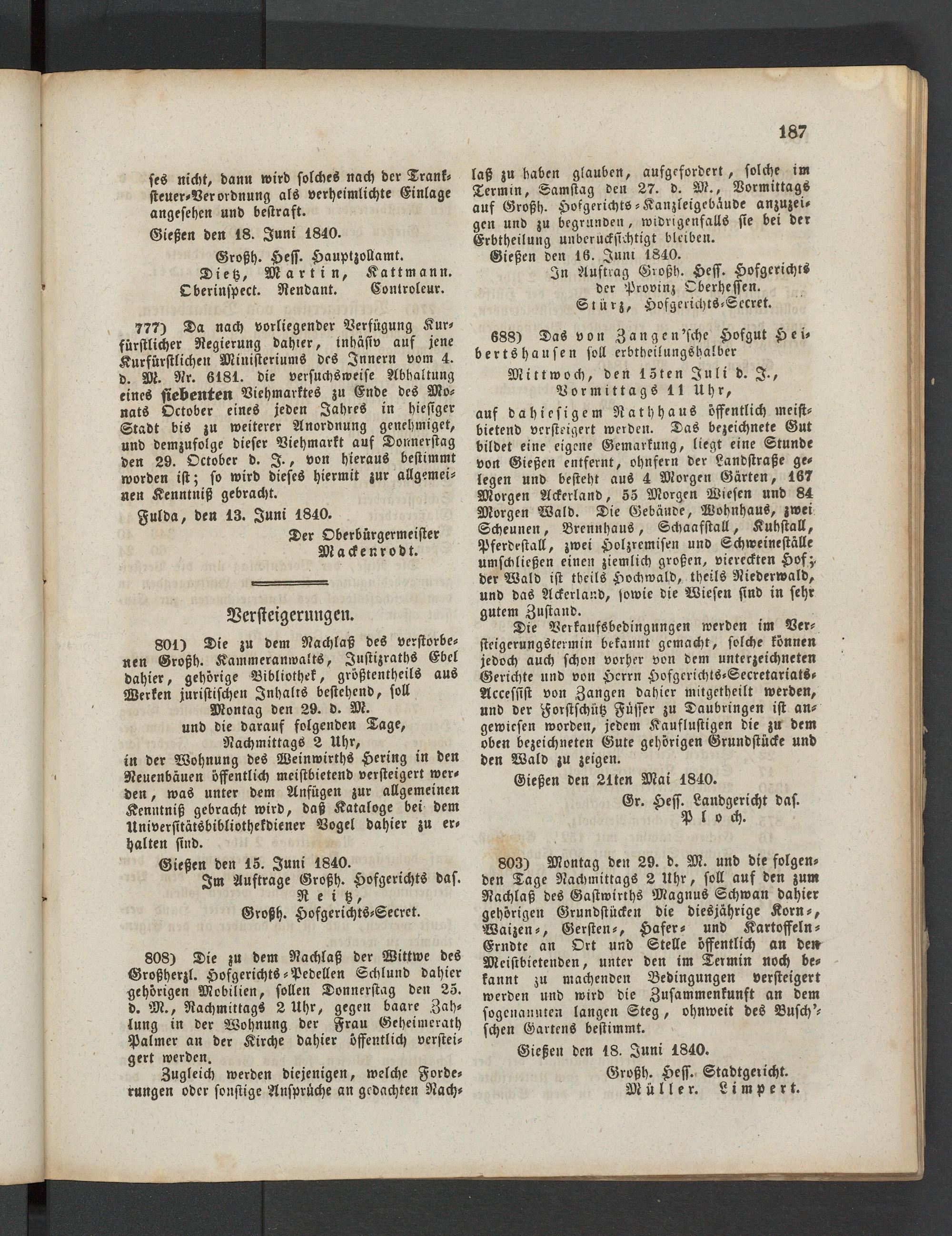 Gießen den 15. Juni 1840.