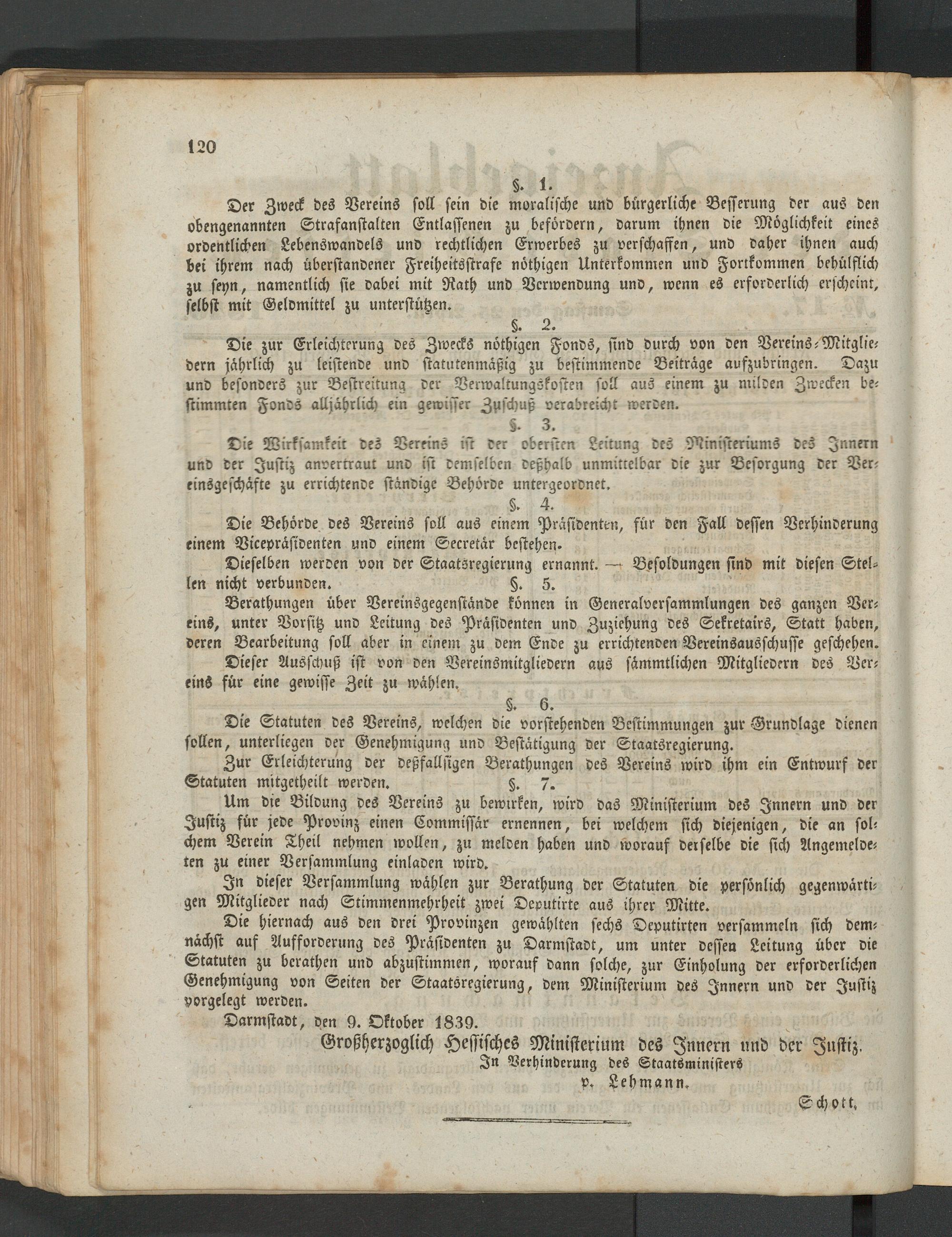 Darmstadt, den 9. Oktober 1839.