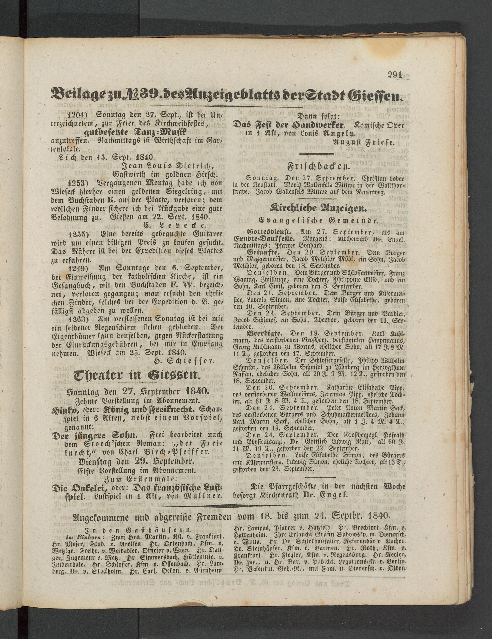 Angekommene und abgcrciste Fremden vom 18. bis znm 24. Septbr. 1840.