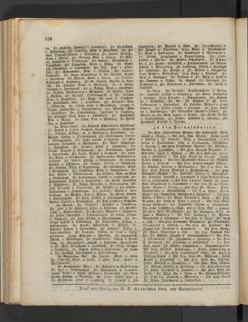 Bei Hrn. Superintend. Simon: Hr. Habermehl. Gymnasiast v. Mainz. — Bei Hrn. Kfm. Munch: Fräul. Zrieß v Alsfeld u Hr. Conradi, ©tut. c. Rudolpbstadt. — Bei Frbrn. v. Harthausen: Frhr. v. Harthausen, Obristlieut. v Carnitz.— Bei Hrn. Obristlieut. Kratner: Hr. Bötticher, Revisor v. Darmstadt. — Bei Hrn. Canzlist Wigand!: Hr. Schröder, Jäger v. Wetzlar. — Bei 6m. Satti ein; Jungk. Lotz v. Al.'endorf. - Bei Hrn. Buich im Ga len: Zungf. Veit o. Schlitz. — Bei Hrn. Wachtmstr. Bieran: Hr. Schmitt. Oecon. v. Derbach. — Bei Hrn. Steuercommiss. Schüler: Hr. Schüler, Pfarrer v. Wirhausen.— Bei Hrn. Prof. Br. Vir: Frau Kaplan Wevland v. Reichelsheim. — Bei Hrn. Geometer Metzler: Hr. Dornseif, Rector v. Biedenkopf, Hr. Dornseif, Accessist o. Darmstadt u. Frau Pfarrer Dvrn- seif v. Holzbausen. — Bei Hrn. Bereiter Bansa: Hr. Jaup. Geh. Staatsrath r. Darmstadt. — Bei Hrn M jo, Meter: Frau!. Mann e. Mamz.— Bei Hrn. Br. Weber: Fräul. Willenbücher o. Reichelsheim. — Bei H n. Adooc. Steinberger: Hr. Emmelius, Amtmann v. Benndorf. — Bei Hrn. Adooc. v.Bnri: Hr. Bogt, Licentiat v. Bern. - Bei Hrn. Biamm: Hr Reitz m. Sohn v. Schiel! — Bei Hrn. Steuerrath Hofmann: Hr. Harbordt, Affeuvr v. Gladenbach. Bei Frau Postmstr. v. Rau: Hr. o. Rau, Oek. r. Hanau. Bet Hrn. Prof. Br. Schmidt: Hr. Br. Spengler, Prof., m- Fam. v. Niarbmg. — Bei Hin Rolhauge: Hr. Wiesen, Steindecker v. Clausthal. — Bei Hrn. C. Bogt: Hr. Buch v. Lich.— Bei Hrn. Forstcand. Bindewald: Hr. Bindewald, . Pharmaceut o. Gedern. — Bei Hrn Ad. Hopfner: Hr. Sommeriad, Scribent v. Darmstadt. — Bei Hry. König: Hr. Engel, Pfarrricar v. Lich. — Bei Hrn Rendant Bieler: Hr. fiödler, Candid, v Hermannstein.— Bei Hrn. I. Steinberger : Hr. Zingemeier v. Weilburg. — Bei Hrn. g. Heimann: Hr. Hofmann v. Altenbnseck. — S ei Hrn. Kfm. Appel: Hr. Blicker, Schullehrer r; Münchholzhausen- Bei Hrn Control Kattmann - 2 Fräul. Schmimng o. gr.'.nfimt. — Bel Hrn. Tabaksfabrik. Gail: Hr. Hont o. Pbilicps-Eichen — Bei Hrn. Prof. Dr. Milbrand: Fräul. Knapp c. Darmstadt — Bei Hrn Prof. Br. Schäler: Fräul Biersack c. Frankfurt. — Bei Hrn. fism. Münch: ■rr. Münch, Candid, v. Friedberg. — 'Bei Hrn. GraceliuS: Hr. Faber. Apotheker v. Romrod. — Bei Hrn Prof. Dr. -Balser: Hr. Vogt, Br. o. Bern. — Bei WittweSchirmer: . Hr. Schirmer, Student o- Marburg. — Bei Hrn. Bnrck: