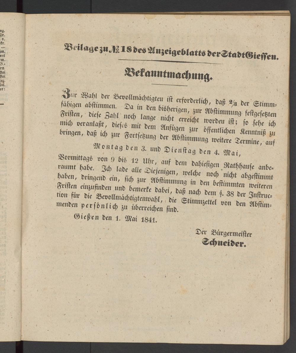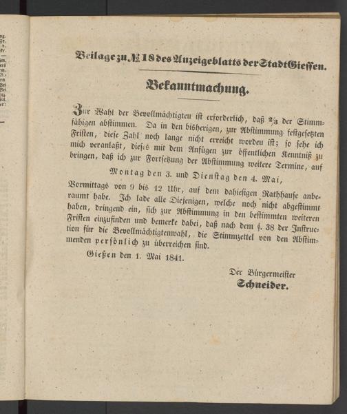 Gießen den 1. Mai 1841.