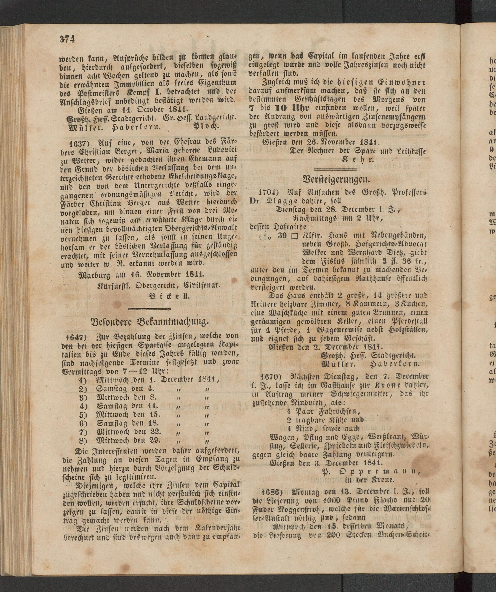 Großh. Hess. Stadtgericht. Müller. Hab erkorn.