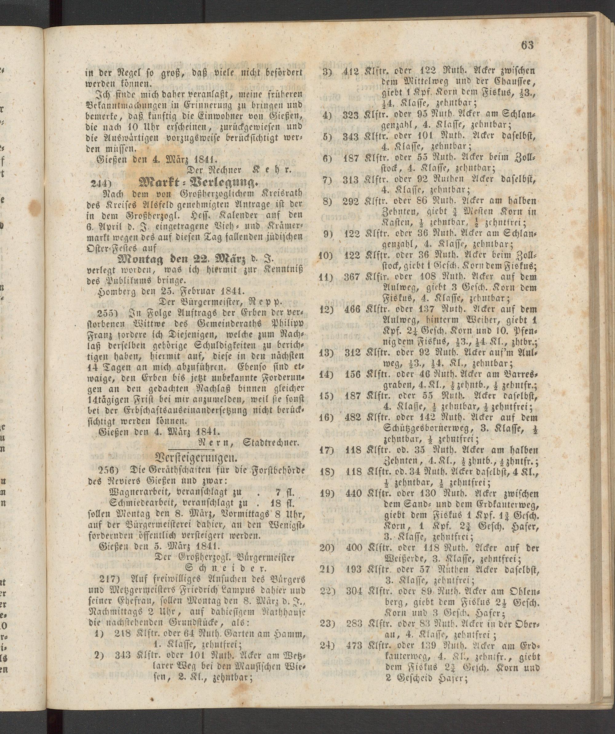 Ich finde mich daher veranlaßt, meine früheren Bekanntmachungen in Erinnerung zu bringen und bemerke, daß künftig die Einwohner von Gießen, die nach 10 Uhr erscheinen, zurückgcwiesen und die Auswärtigen vorzugsweise berlickfichtigt werden müssen.