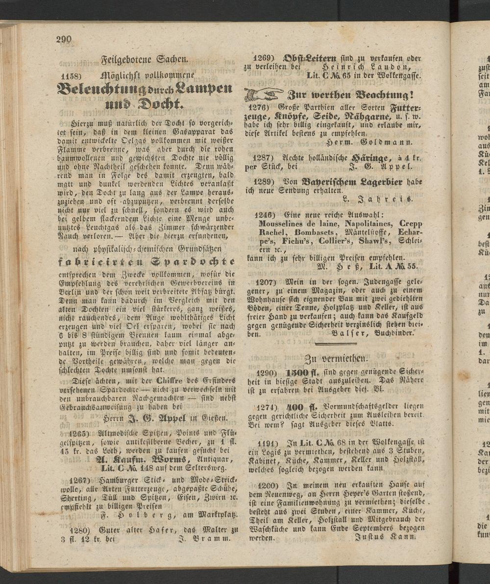 nach physikalisch-chemischen Grundsätzen fabricirteN Gpar Dochte entsprechen dem Zwecke vollkommen, wofür die Empfehlung des verehelichen Gewerbvereins in Berlin und der schon weit verbreitete Absatz bürgt. Denn man kann dadurch im Vergleich mit den alten Dochten ein viel stärkeres, ganz weißes, nicht rauchendes, dem Auge wohlthätiges Licht erzeugen und viel Oel ersparen, wobei sic nach 6 bis 8 stündigem Brennen kaum einmal abgeputzt zu werden brauchen, daher viel länger an- balten, im Preise billig sind und somit bedeutende Vortheile gewähren, welche man gegen die schlechten Dochte umsonst hat.