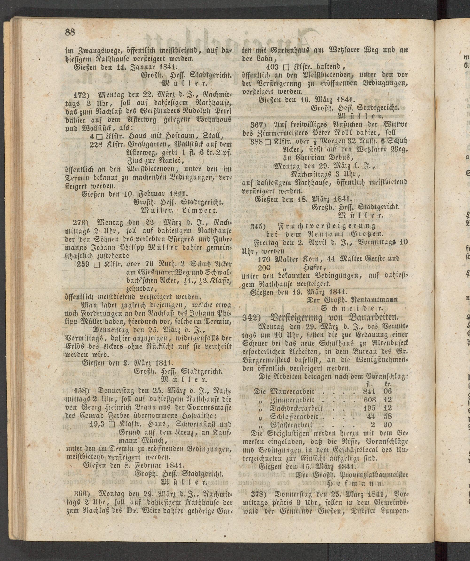 378) Donnerstag den 25. März 1841, Vormittags präcis 9 Uhr, sollen in dem Gemeindewald der Gemeinde Gießen, Diftrict Lumpen-
