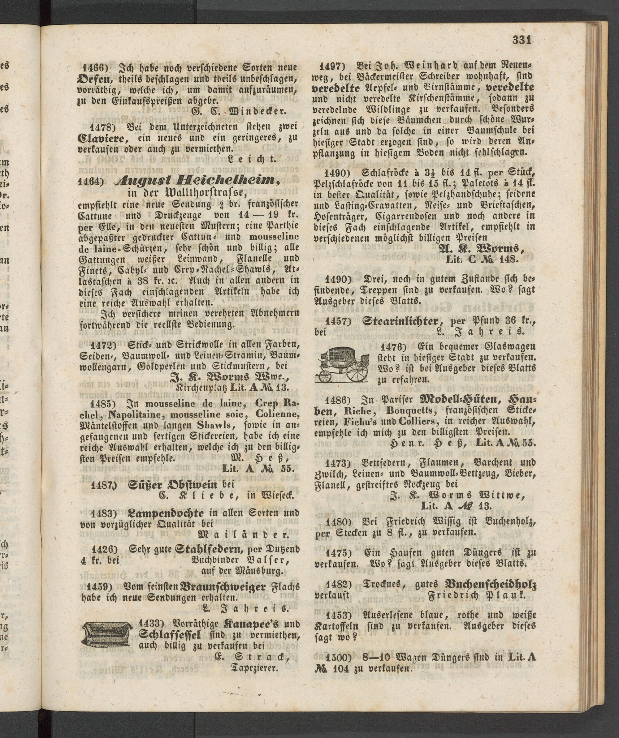 1480) Bei Friedrich Wissig ist Buchenholz, per Stecken zu 8 fl., zu verkaufen.