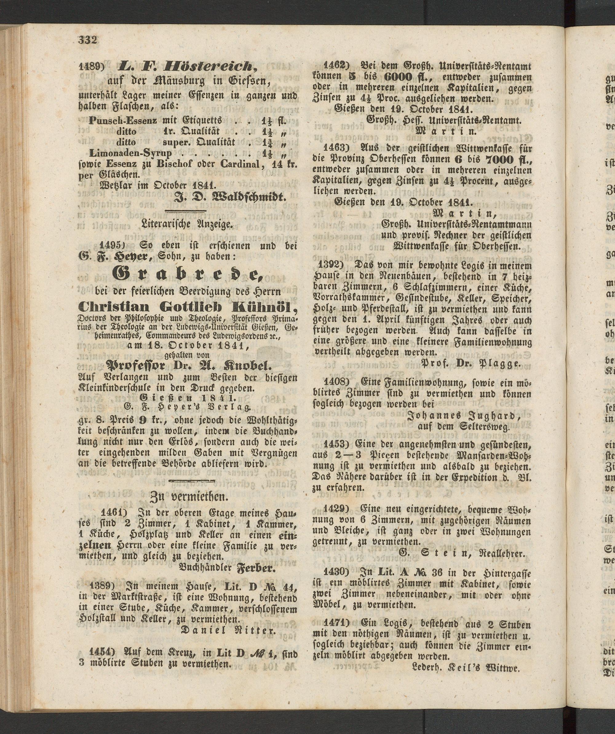 Gießen den 19. Octvber 1841.
