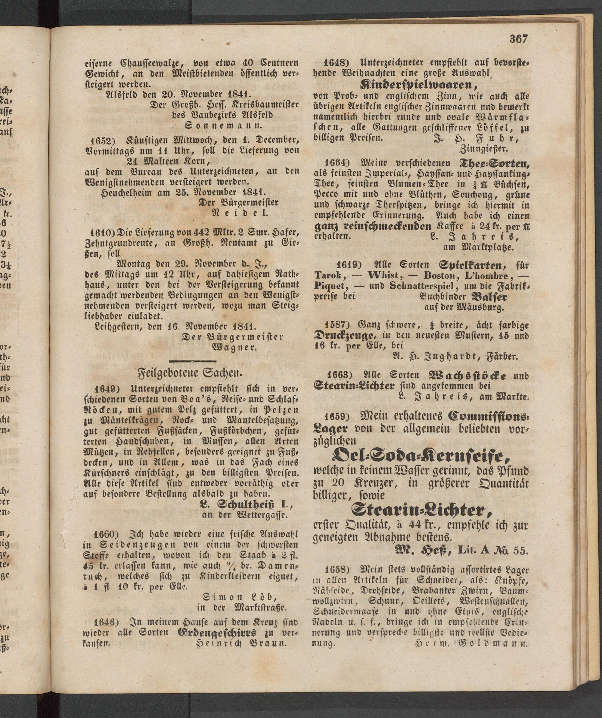 1664) Meine verschiedenen Thee-Sorten, als feinsten Imperial-, Hayssan- uud Hayssanking- Thee, feinsten Blumen-Thee in Büchsen, Pecco mit und ohne Blüthen, Souchong, grün« und schwarze Theespitzen, bringe ich hiermit in empfehlende Erinnerung. Auch habe ich einen ganz reinschmeckenden Kaffee ä 24 kr. per s erhalten. L. Z a h r e i s,