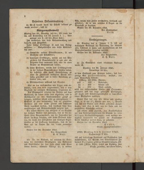 10) Da der Anstand, bei welchem die Erhebung der städtischen Grundzinsen von Gebäuden und Güterstücken für das Jahr 1841 nicht Statt finden konnte, nunmehr beseitigt ist; so werden