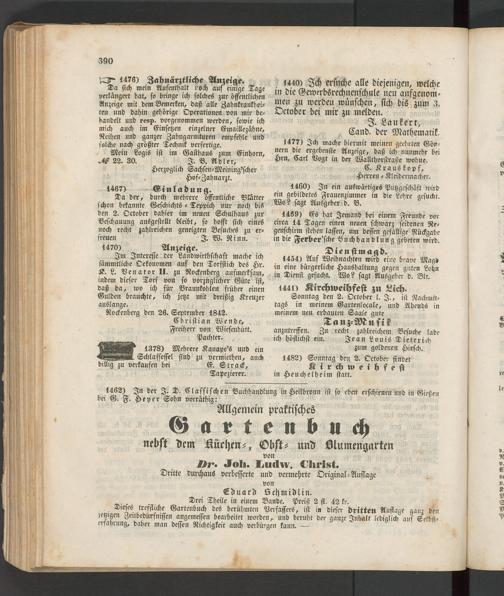 1462) In der I. D. Classisch en Buchhandlung in Heilbronn ist so eben erschienen und in Gießen bei G. F. Heyer Sohn vorräthig: