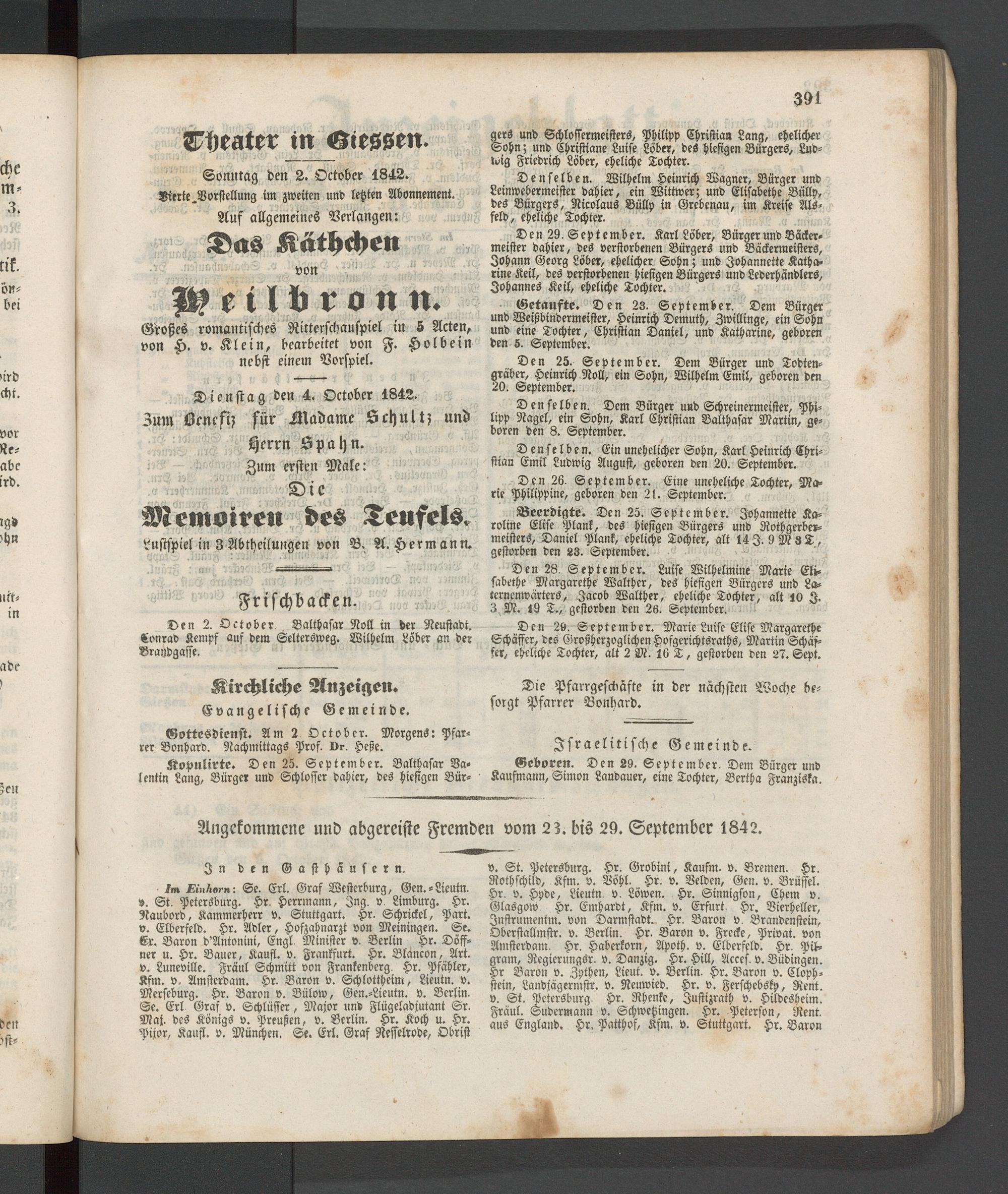 Sonntag den 2. Oktober 1842.