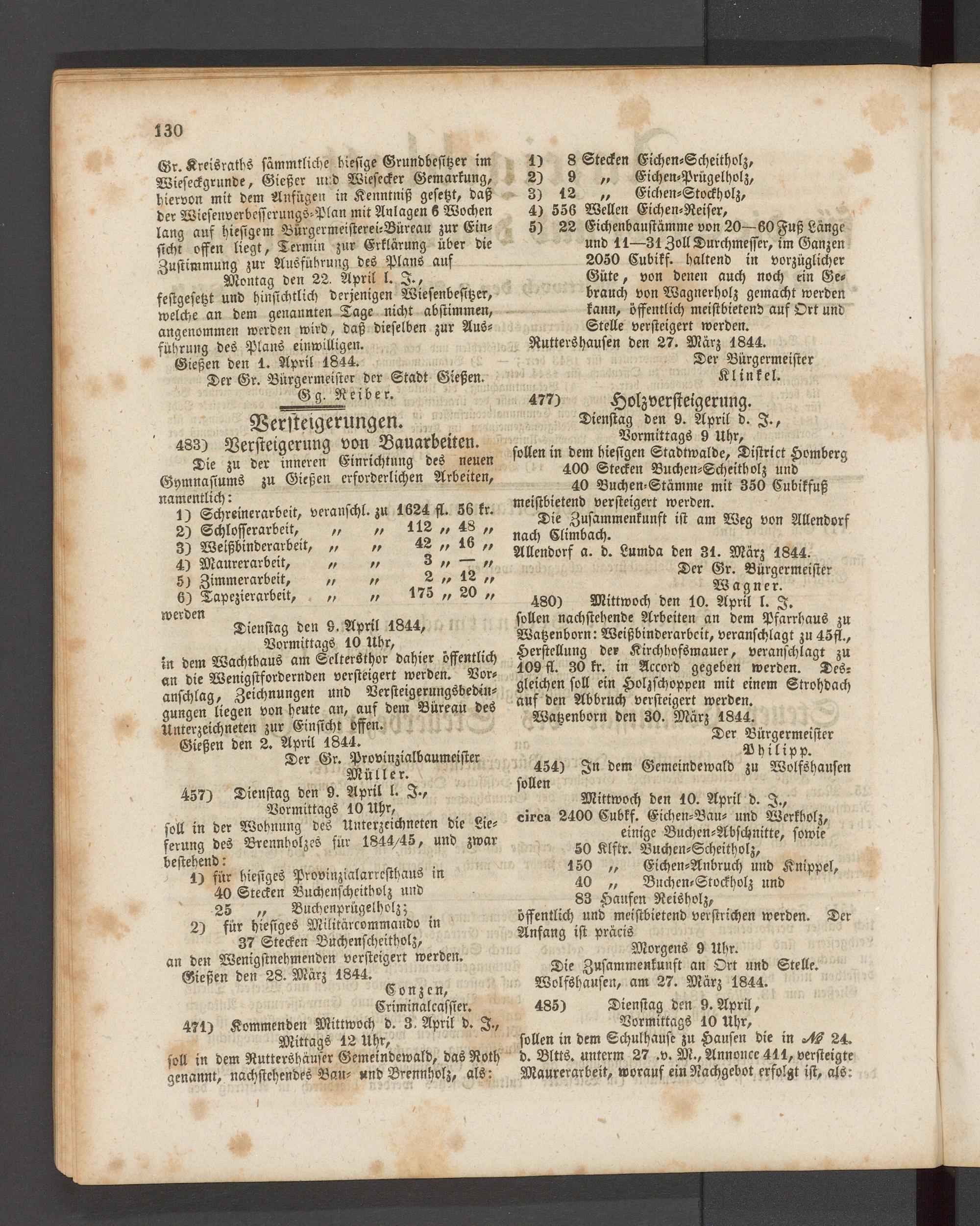 Der Gr. Bürgermeister der Stadt Gießen. G g- Reiber.