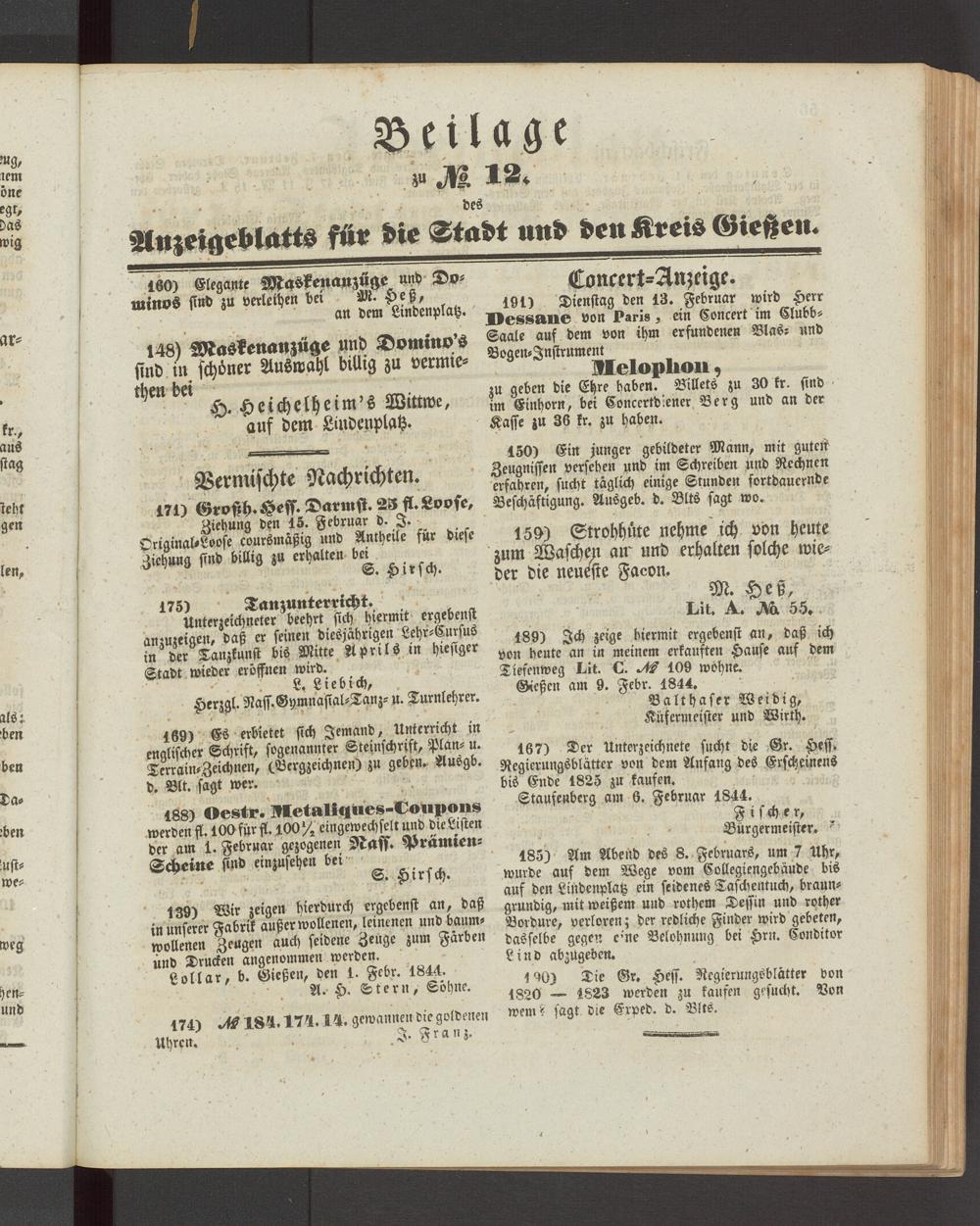 Lollar, b. Gießen, den 1. Fcbr. 1844.