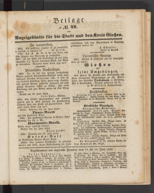 Angekommene und abgereiste Fremden vom 11. bis 13. Juni 1844.