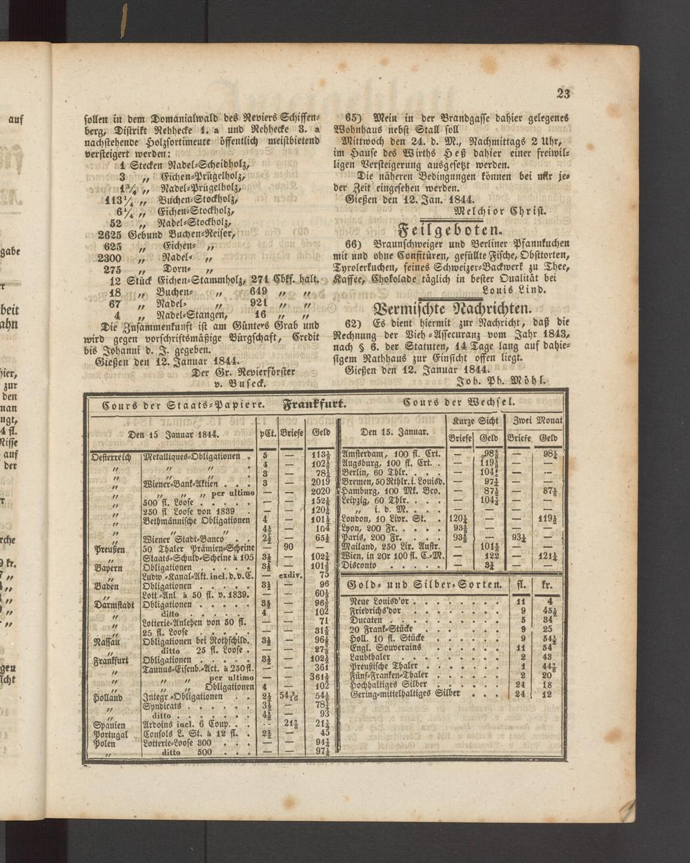 Gießen den 12. Januar 1844. sigem Rathhaus zur Einsicht offen liegt.