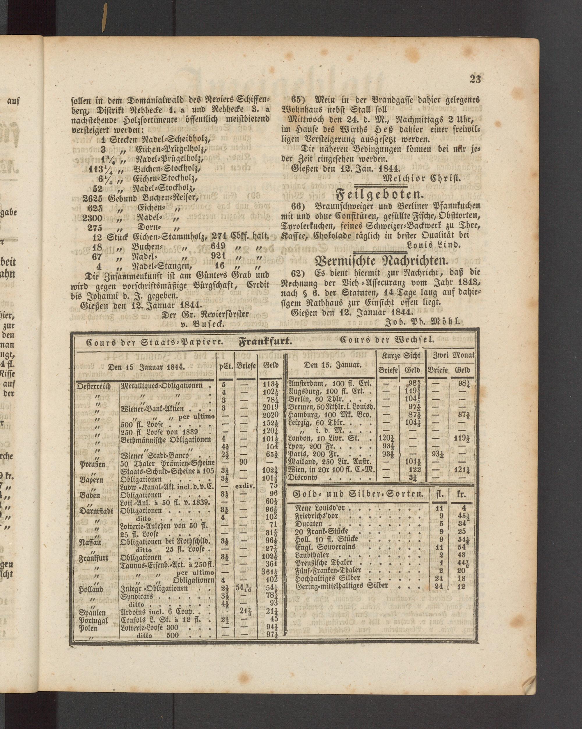 Der Gr. Revierförster Gießen den 12. Januar 1844.
