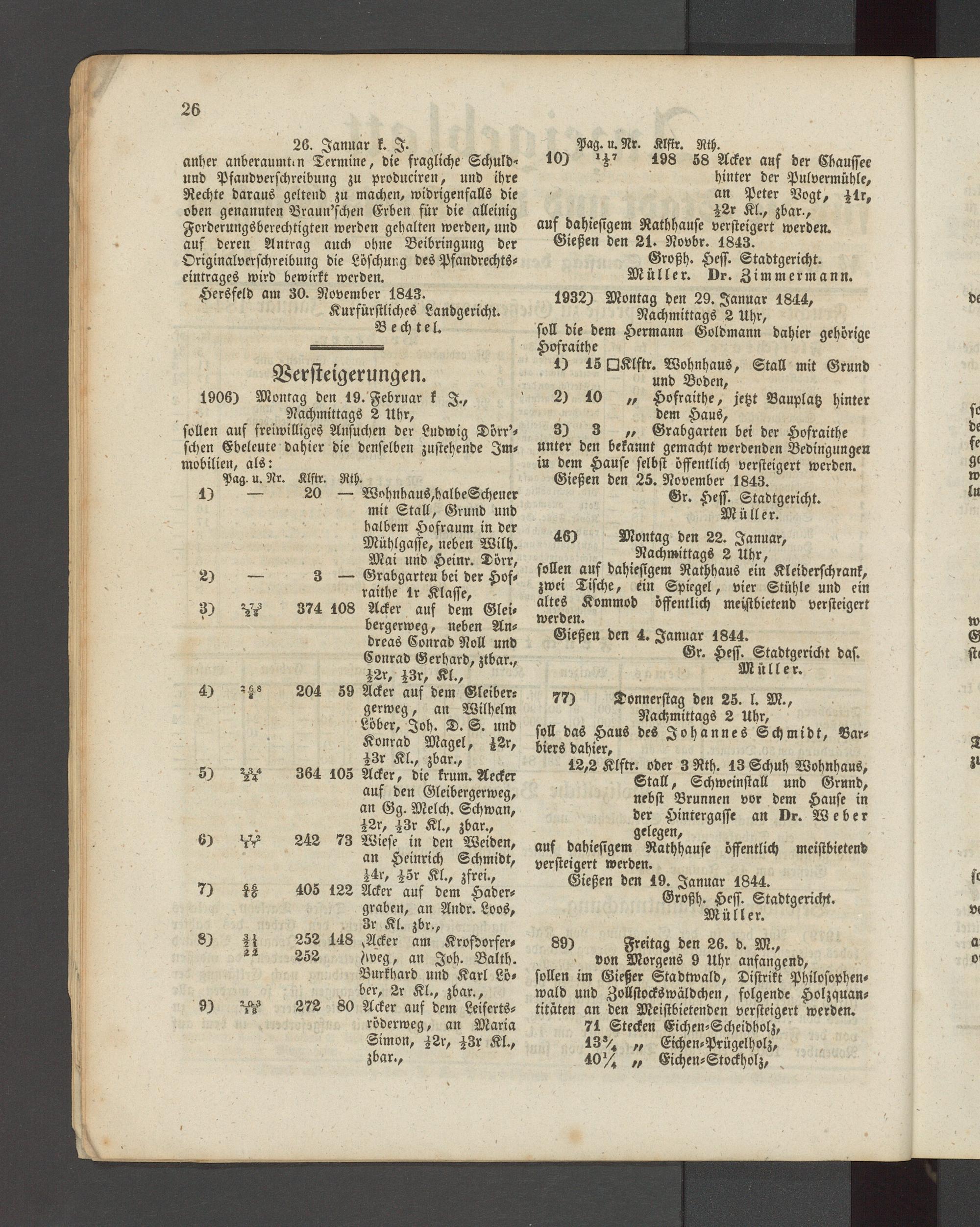 hinter der Pulvermühle, an Peter Vogt, zir, 42r Kl., zbar., auf dahiesigem Rathhause versteigert werden.