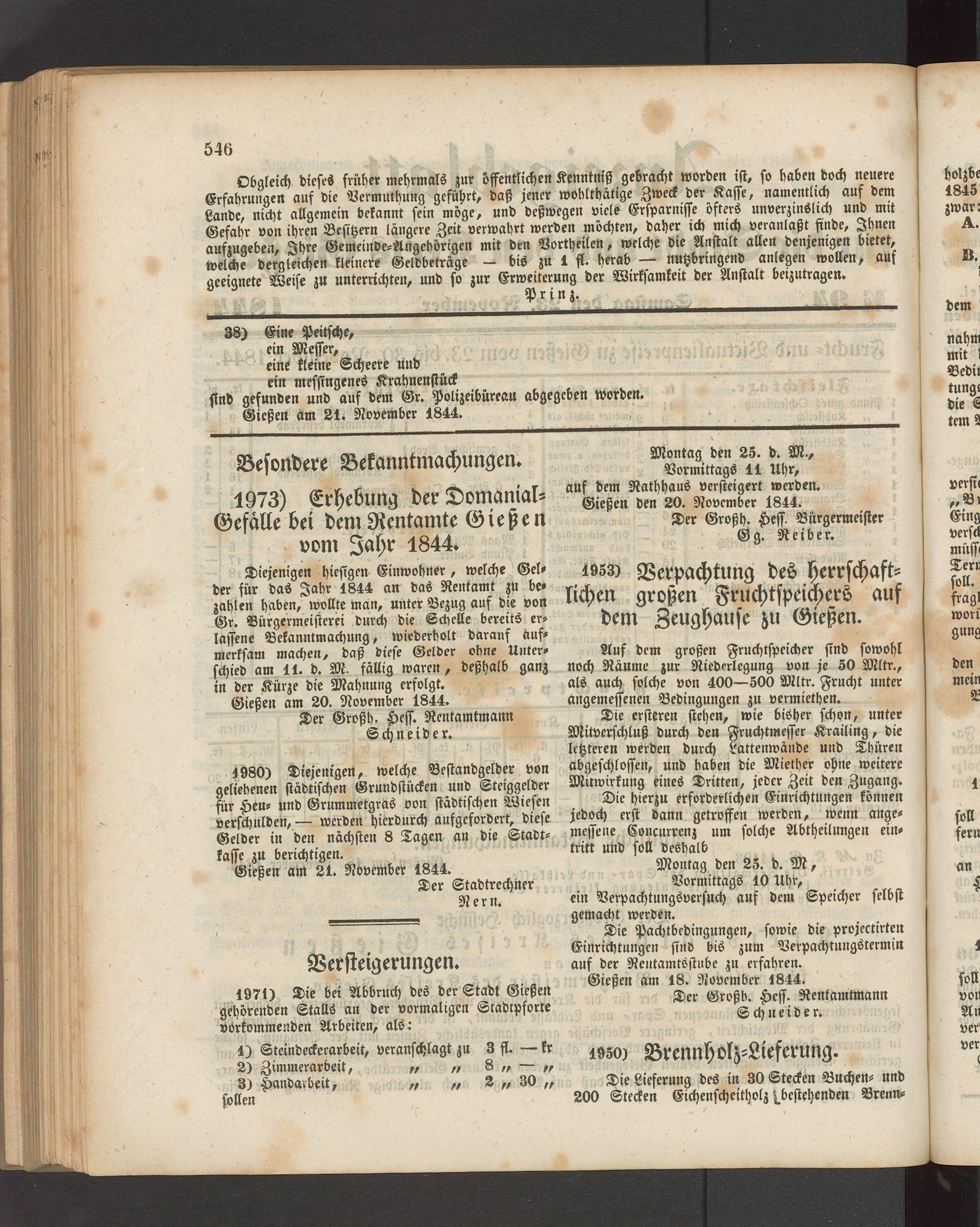 1973) Erhebung der Domanial- Gefalle bei dem Rentamte Gießen vom Jahr 1844.