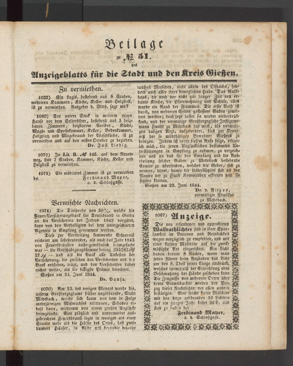 Gießen am 24. Juni 1844.
