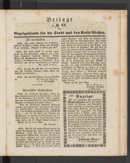 Anzeigeblatts für die Ltadt nutz den Kreis Gießen.