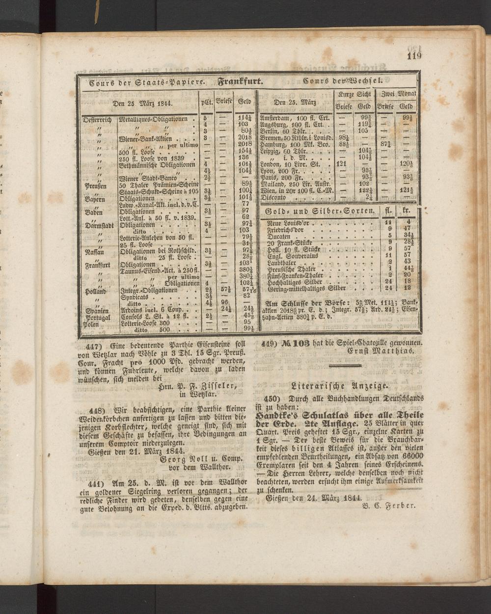 Cours der Staats-Papiere. Frankfurt.