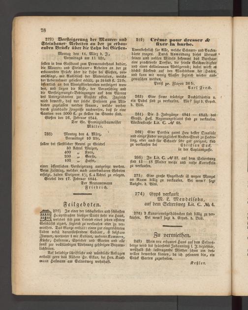 272) Versteigerung der Maurer- und Steiuhauer- Arbeiten an der zu erbauenden Brücke über die Lahn bei Gießen»