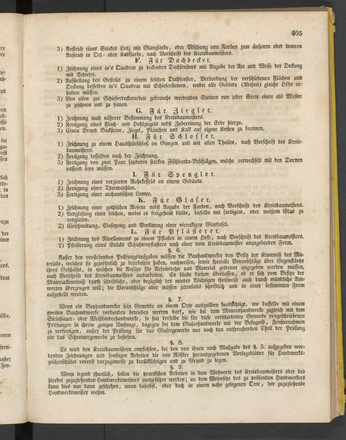 Wenn ein Baubandwerker sein Gewerbe an einem Orte auszuüben beabsichtigt, wo dasselbe mit einem nveiten Bauhandwerke verbunden betrieben werden darf, wie bei dem Maurerhandwerke zugleich mit dem Stcinhaucr- oder Weißbinderhandwerke, so hat derselbe die für diese verschiedenen Gewerbe vorgcschriebenen Prüfungen in ihrem ganzen Umfange, dagegen bei dem Glaserhandwerke mit der Bcfngniß , Fensterrahmen zu verfertigen, außer der Prüfung für das Glascrgewerbe nur noch den entsprechenden Thcil der Prufu g für das Schreinergewerbe zu bestehen.