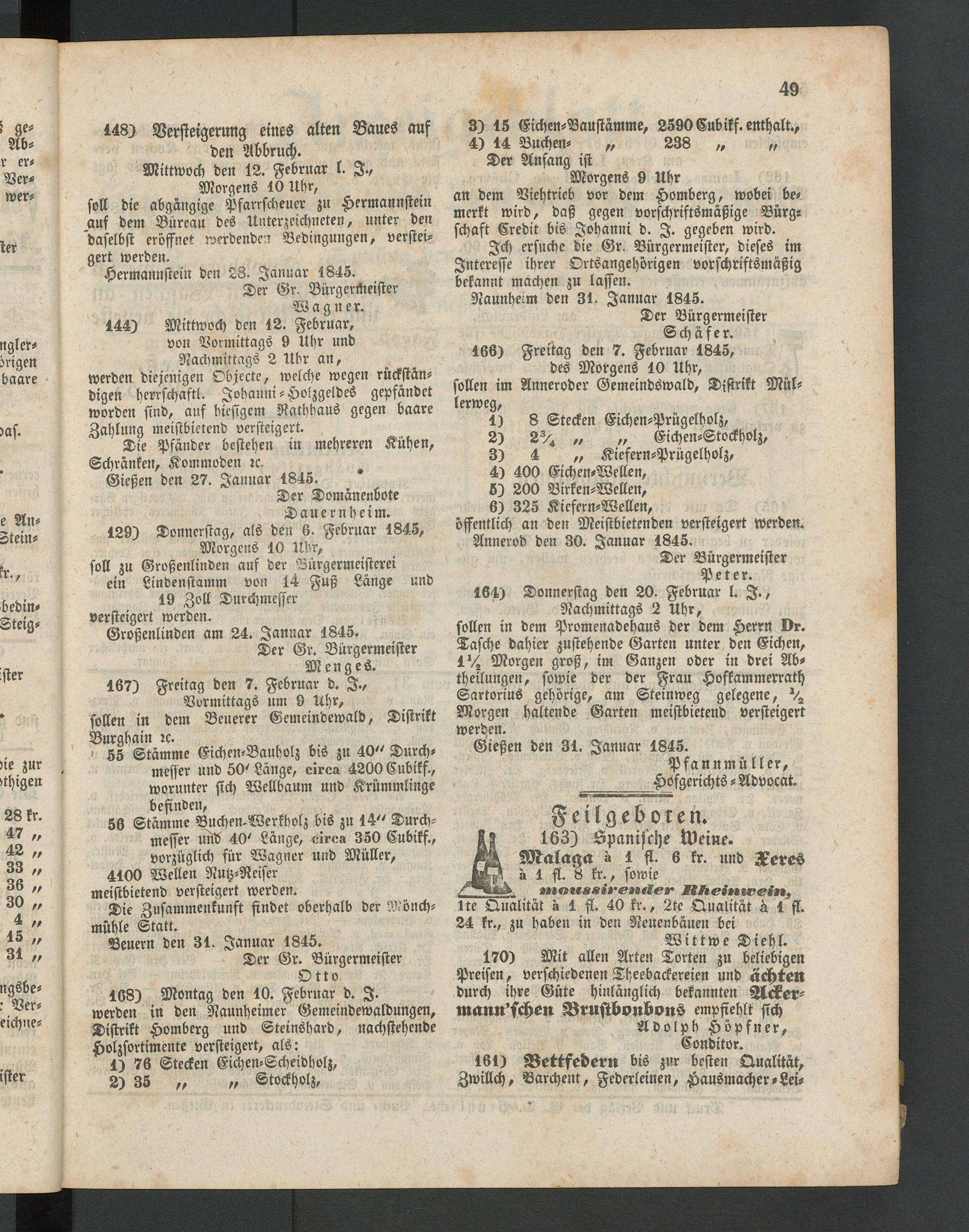öffentlich an den Meistbietenden versteigert werden. Annerod den 30. Januar 1845.