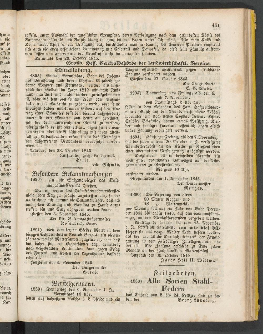 Butzbach den 30. Oktober 1845